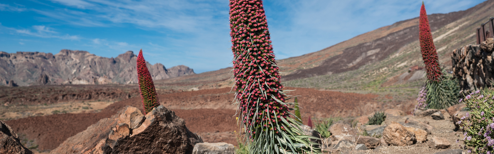 Le tajinaste rouge est une plante des îles Canaries qui développe des cannes spectaculaires couvertes de centaines de petites fleurs. À cette époque de l'année, telles des lanternes rouges, elles marquent de leurs fleurs le paysage volcanique qui pointe vers le ciel.