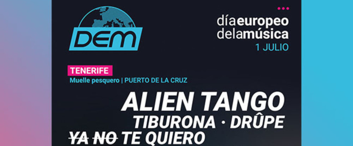 L'événement de Puerto de la Cruz, qui se déroulera sur l'esplanade de la batterie de Santa Bárbara, proposera un concert d'Alien Tango, un groupe basé au Royaume-Uni qui se distingue par ses touches psychédéliques, glam, hip-hop et orientales. Le groupe madrilène Tiburona sera également présent, combinant l'esthétique kitsch des seventies et le garage yeyé avec des paroles fraîches et vindicatives. L'affiche est complétée par deux groupes canariens émergents, Ya No Te Quiero et Drûpe, et la soirée s'achève avec les DJs canariens We Are Trash.