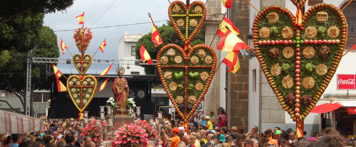 Los Cœurs de Tejina est l'une des traditions les plus colorées et les plus frappantes de l'île. Une structure en forme de croix avec deux cœurs en bois, l'un plus grand que l'autre, sert de base aux villageois pour coudre des fleurs, des fruits et des gâteaux à base de farine. Cette fête a été déclarée Bien d'Intérêt Culturel et a plus de 100 ans.