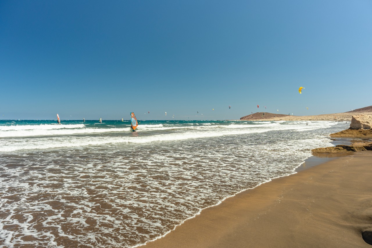 Avec le regard et l’adrénaline fixés sur la mer, les windsurfeurs profitent des plages naturelles infinies de sable doré qui s'étendent sur plus de 3 kilomètres le long de la côte d'El Médano, ce qui en fait le spot le plus audacieux de l'île : c'est la capitale du kiteboarding et du windsurf à Ténérife.