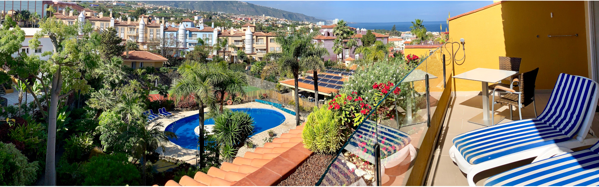 Ce charmant petit complexe d'appartements est situé sur le versant ouest du parc Taoro, et offre une vue spectaculaire sur le Teide et l'océan Atlantique. L'établissement dispose de 30 appartements spacieux et entièrement rénovés. La végétation subtropicale entoure agréablement l’espace petit-déjeuner et la piscine extérieure, idéale pour se détendre. Les plus actifs pourront profiter d’une piste de tennis, d’une table de ping-pong, ainsi que du service de location de voitures qui offre une excellente occasion d’explorer les merveilles de notre île.